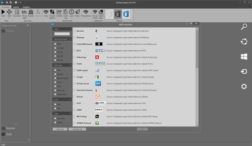 Now select the number of sources and try to get the market data. As such, we propose to use: IQFeed (as a source of real-time data with the maximum number of concurrent subscriptions).