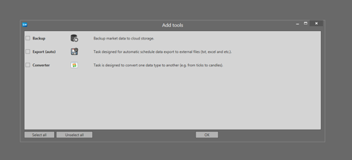 In order to move forward it will be enough just to click OK without selecting anything in this window. If necessary, you can always restore this setting via the ADD -> Tools button and select the required.